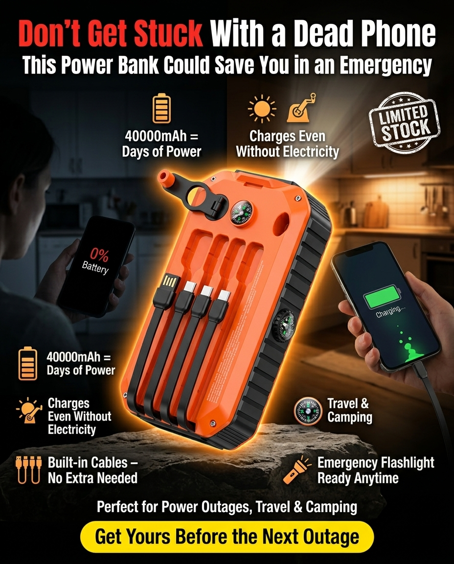 This 40000mAh solar charger power bank is a top seller because it keeps your devices powered when you need it most. Its high-capacity battery provides long-lasting power, while the solar charging and hand crank make it a reliable emergency power bank. With multiple outputs and built-in cables, you can charge several devices anytime, anywhere. It’s a must-have portable solar charger for travel, camping, and emergency preparedness.
